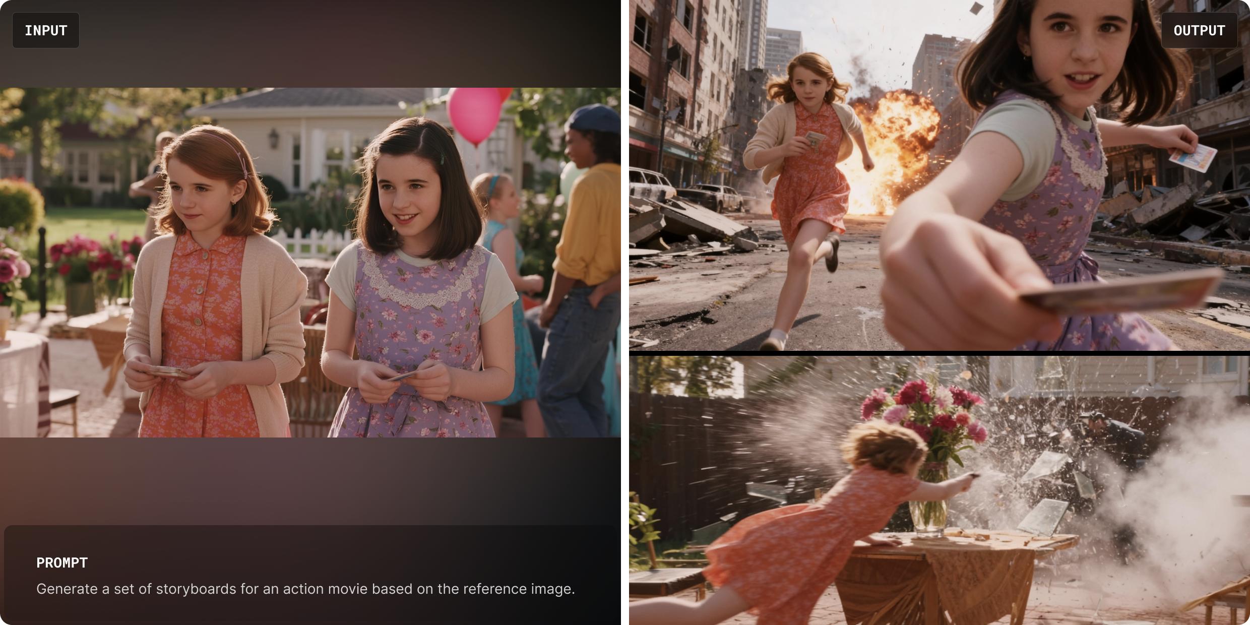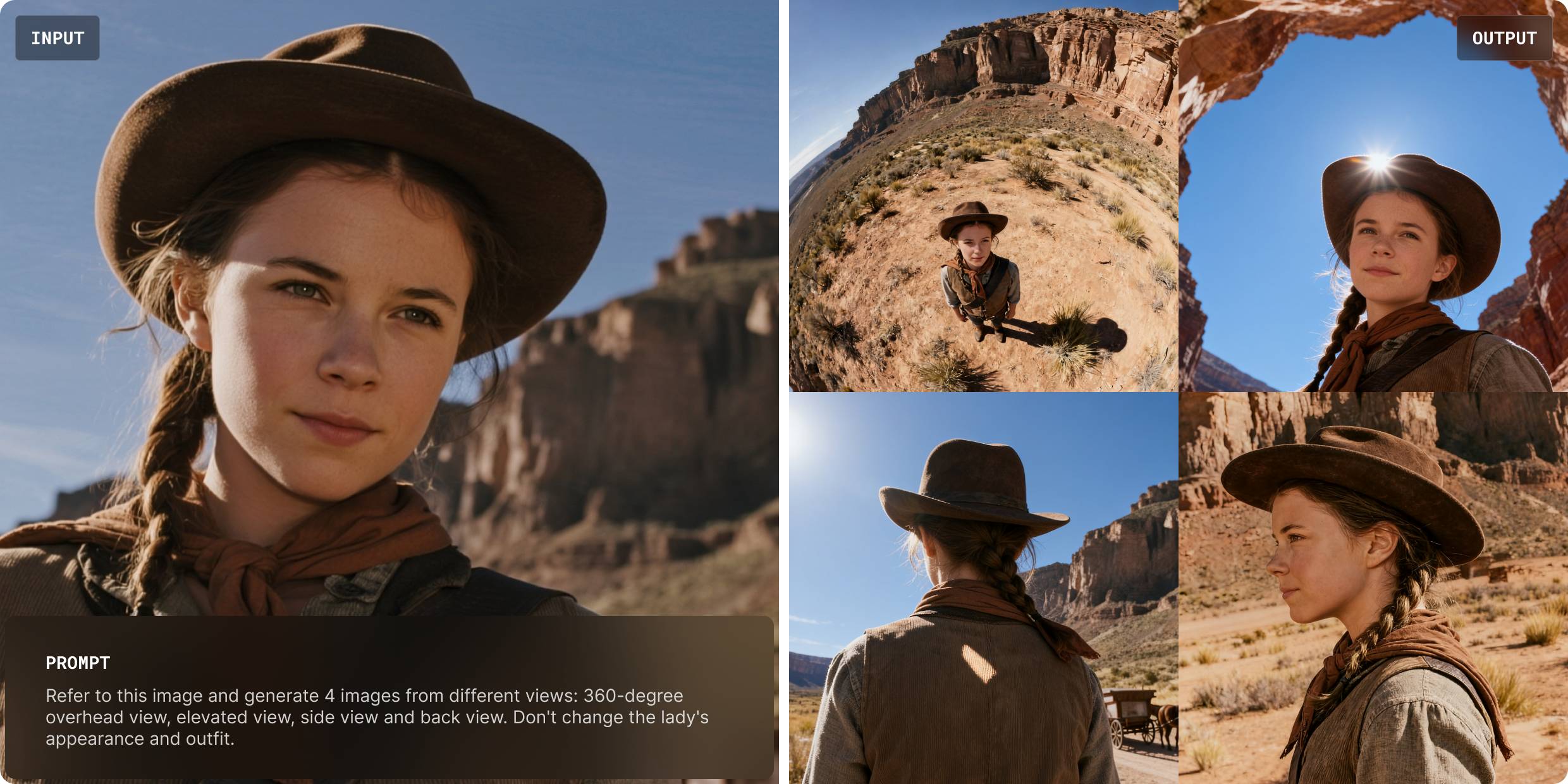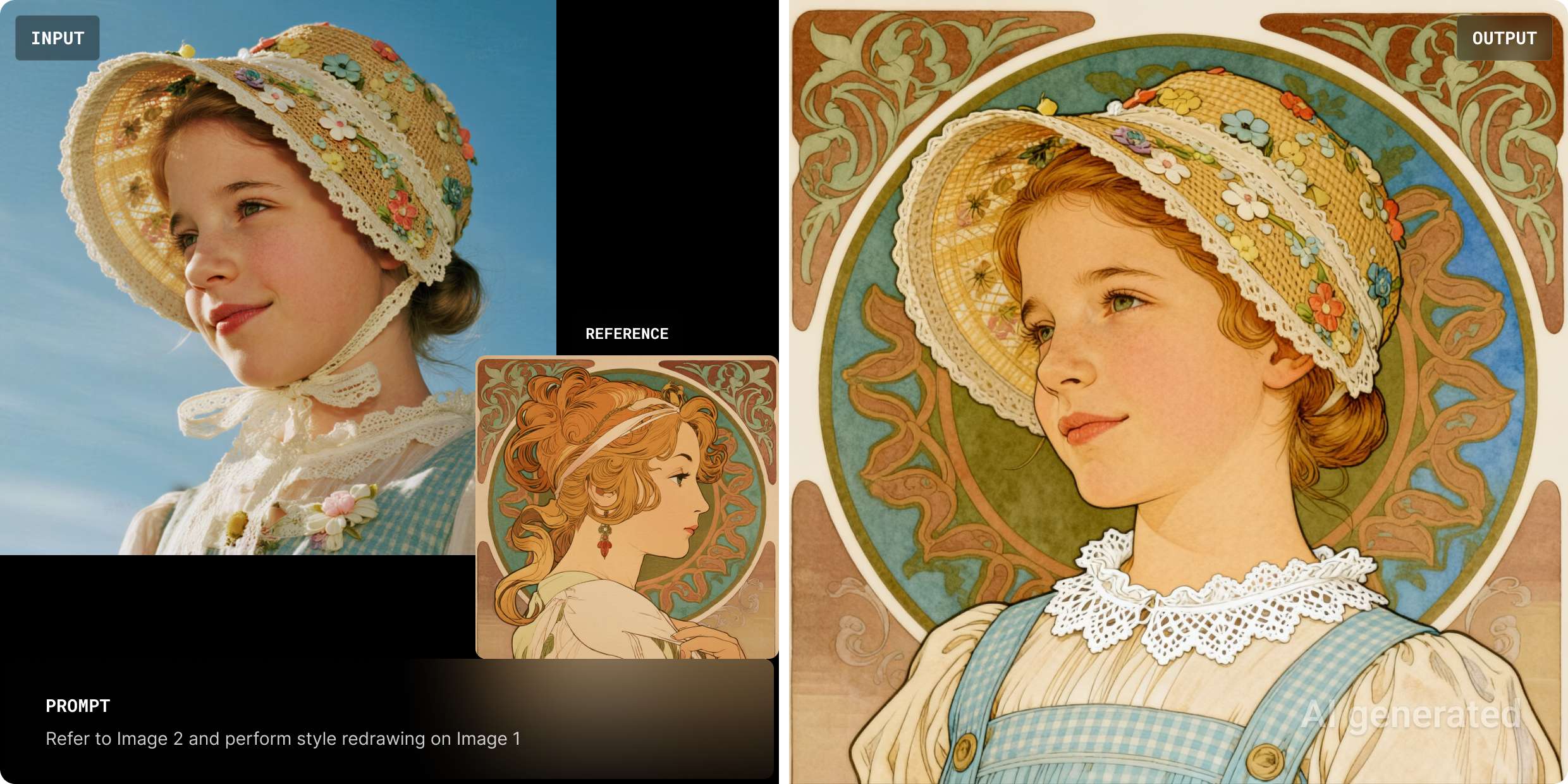 可将文本与最多 10 张参考图片相结合,实现多图融合,进而生成连贯的图像系列,适用于产品故事讲述与营销场景。